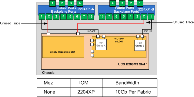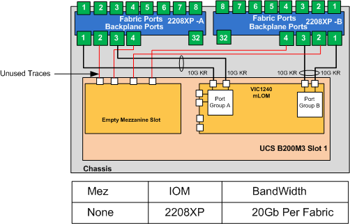 So as you can see, when using a 2204XP and the VIC1240 with no Mez adapter, only one of the two 10Gb traces actually matches up. (See Below)