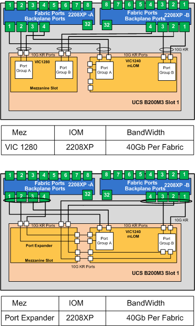 Not sure why Cisco did not trace I/O Module ports 1 and 2 to the mLOM and 3 and 4 to the Mez, I guess the way they have done it allows you to always have access to the Mez slot even if using a 2204XP I/O module. (as mentioned above the Mez slot can be used for other cards not just CNA’s)